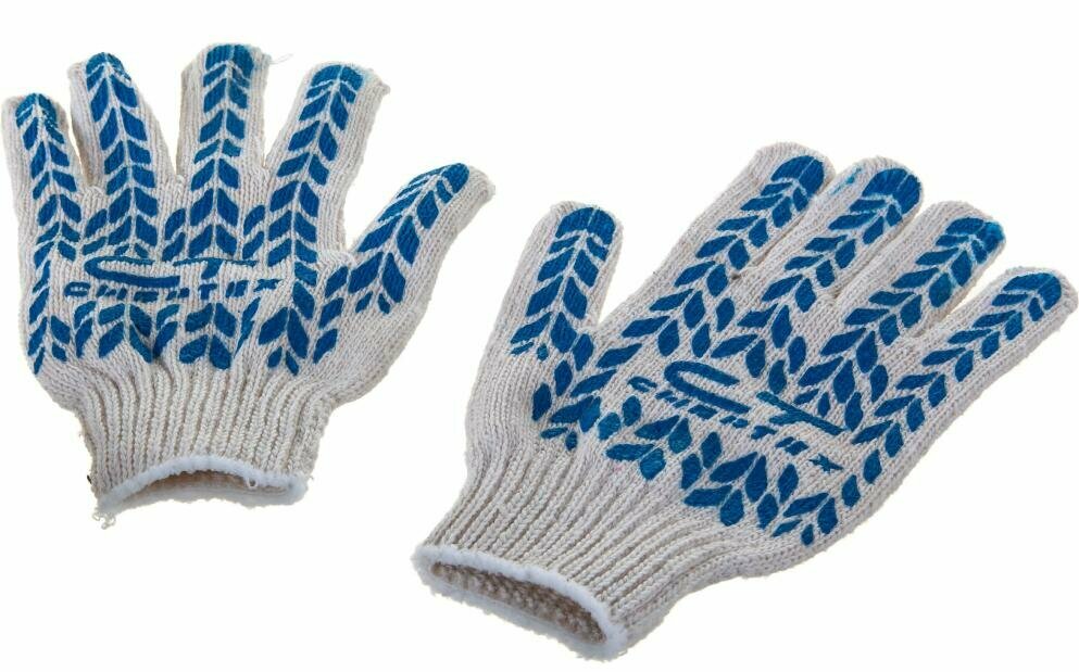 Трикотажные перчатки Сибртех с ПВХ-покрытием "Протектор" благодаря 7 классу вязки обеспечивают защиту рук от грязи, царапин, мозолей и механических повреждений. Они пригодятся во время проведения садовых, строительных, погрузочно-разгрузочных и других работ. Перчатки удобно сидят на руках, не стесняют движений, гипоаллергенны. Преимущества: Благодаря дышащей натуральной хлопчатобумажной ткани с добавлением полиэфирной нити руки не потеют во время работы. Перчатки легко очищаются от грязи, поэтому подходят для многократного использования. На ладонной части перчатки имеется ПВХ-покрытие, обеспечивающее надежный захват различных инструментов и мелких деталей. За счет эластичных манжетов перчатки не спадают с рук, что повышает комфорт работы.
