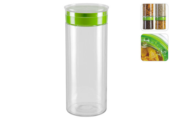 Банка для сыпучих продуктов изготовлена из высококачественного стекла. Особая термообработка и специальный состав стекла сделали его прочнее и устойчивее к повреждениям. А благодаря своим свойствам, стекло не впитывает запахи и моется до идеальной чистоты. Силиконовый уплотнитель способствует герметичному закрытию банок, защищая продукты от влаги, сохраняя их аромат и увеличивая их срок годности. Прозрачное окошечко в крышке позволит легко определить содержимое банок при хранении в ящиках.Объем: 2.2 л.Высота: 29 см.