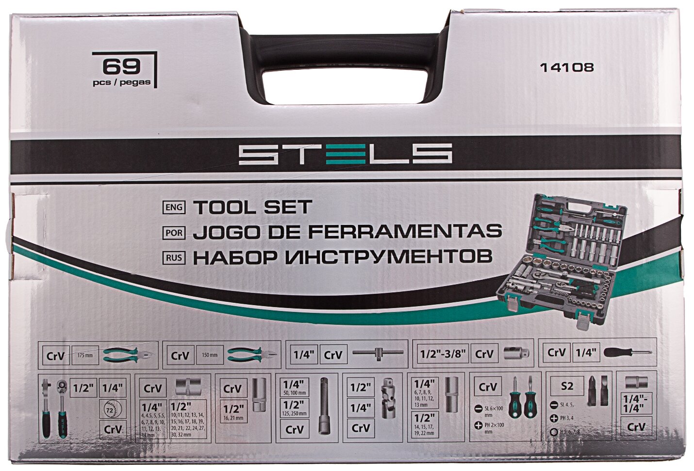 Наборы инструмента торговой марки STELS разработаны специально для автолюбителей и центров технического обслуживания. Каждый этап производства контролируется в соответствии с международными стандартами. Головки и комбинированные ключи изготовлены из хромованадиевой стали, придающей инструменту исключительную твердость в сочетании с легкостью. Биты, биты-вставки и отвёртки производятся из стали S2, улучшающей свойства инструмента. Все наборы упакованы в кейс, изготовленный из жесткого противоударного пластика, с металлическими застёжками. Наборы инструмента STELS пригодятся вам не только в автомобиле. С их помощью можно проводить бытовой ремонт дома и на даче, ремонт бытовых конструкций и садовой техники. На все наборы инструментов STELS предоставляется пожизненная гарантия ( об условиях гарантии вы можете узнать из гарантийного талона).