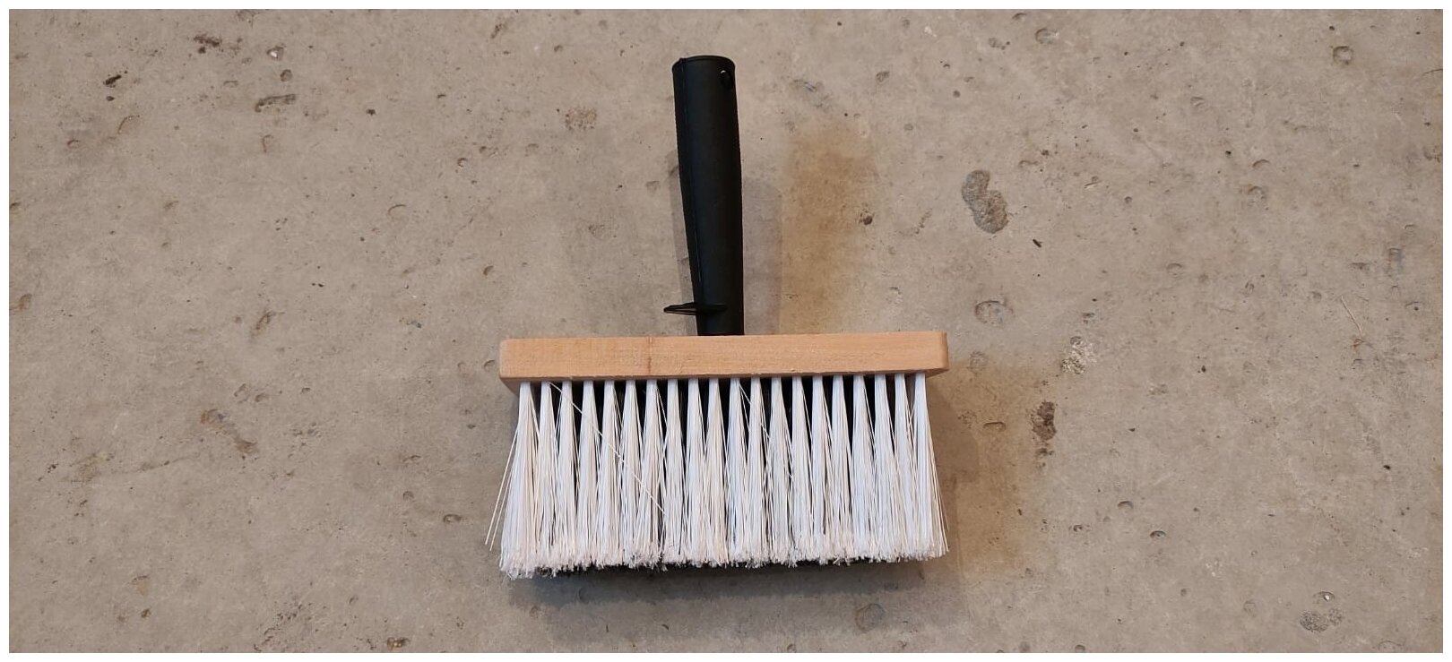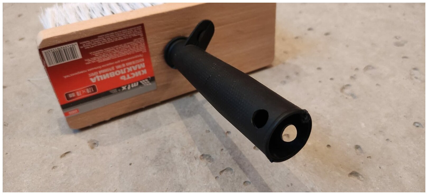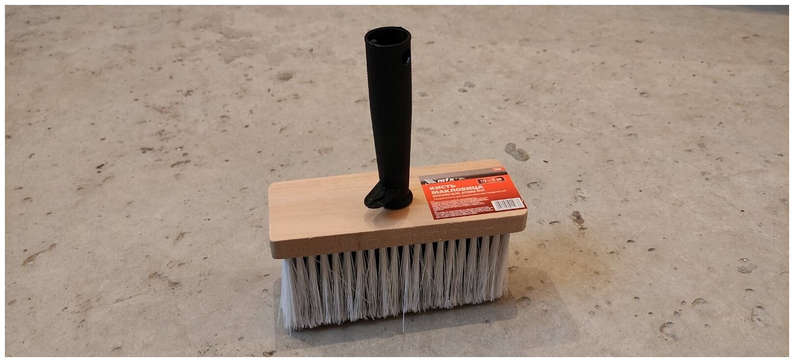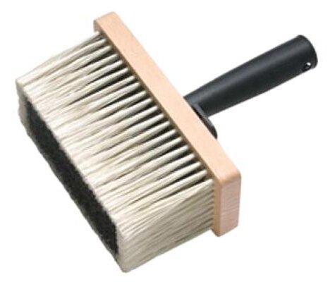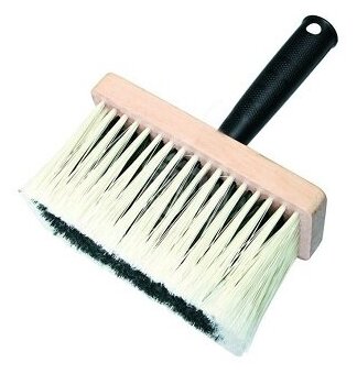 Ворс кисти – искусственная щетина, расщепленная на концах. Толщина кисти от 52 до 70 мм. Пластмассовая ручка с полостью для крепления телескопического стержня позволяет работать в труднодоступных местах, а также имеет специальное приспособление для крепления на емкость.