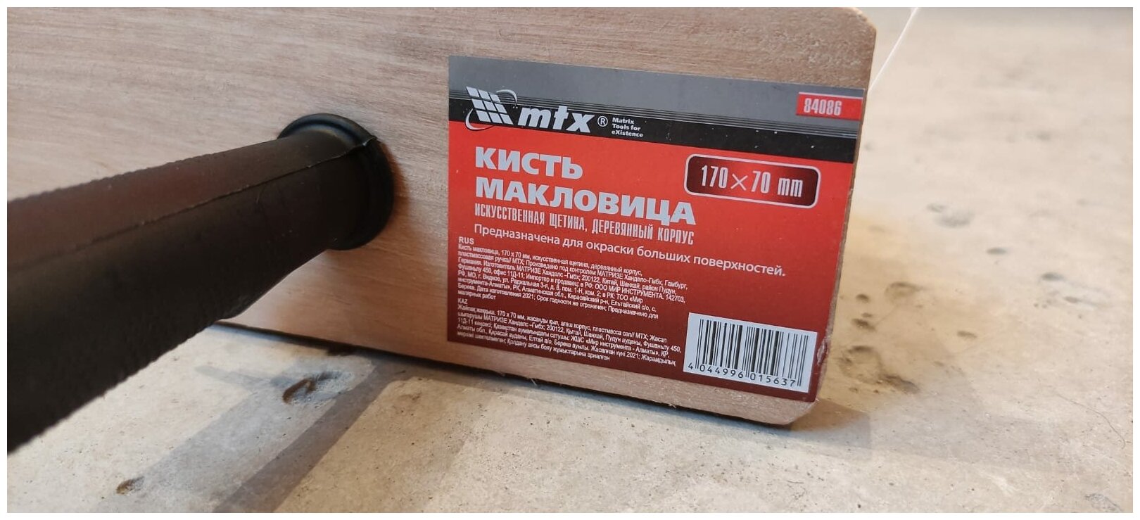 | Прочие особенности и свойства | Кисть-макловица MATRIX, 84086, 170х70 мм предназначается для работ с водно-дисперсионными, масляными красками и лаками. Кроме этого, инструментом можно размывать ЛКМ, наносить клеящие составы, грунтовки и побелки. Кисть имеет достаточную рабочую область, благодаря чему может использоваться для больших поверхностей. |