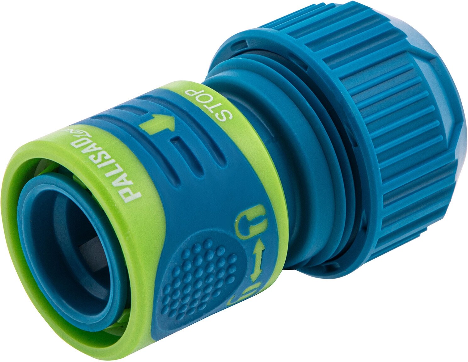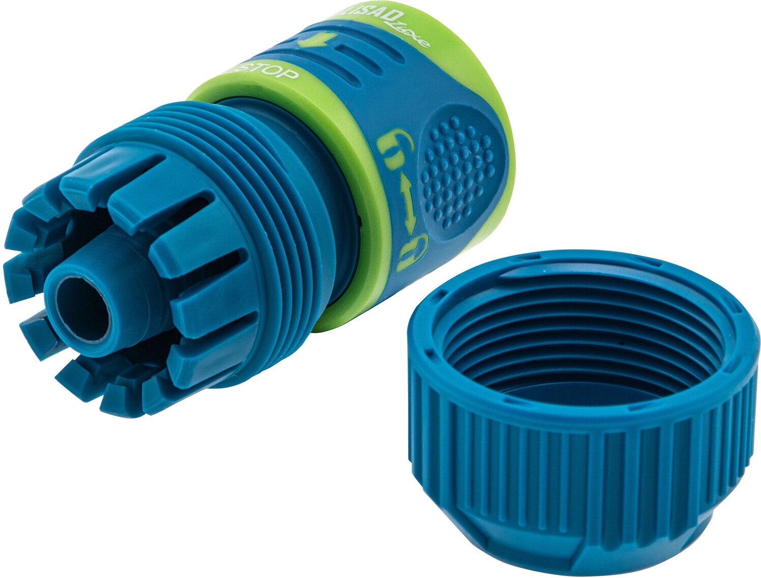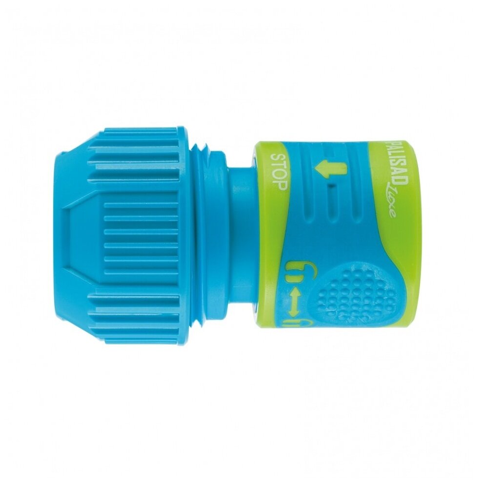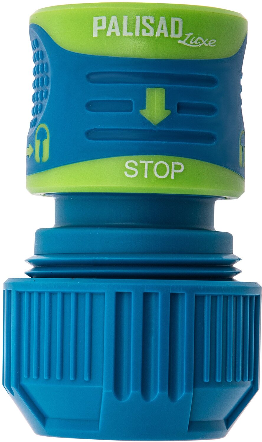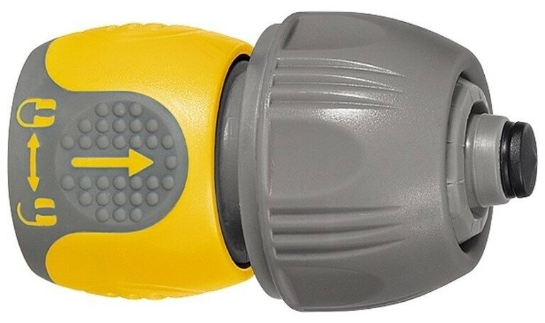 Надевается на шланг. Предназначен для быстрого и многократного подключения распыляющей насадки к шлангу. За счет функции аквастопа подача напора автоматически прекращается при отсоединении насадки от шланга и возобновляется при подсоединении.