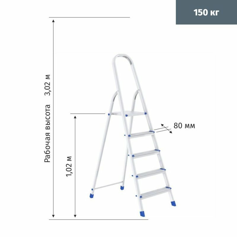 Алюминиевая стремянка Сибртех широко используется в бытовых условиях, строительстве и ремонтных работах. Лестница представляет собой облегченную складную модель, состоящую из пяти ступенек. Изделие не занимает много места при хранении. Оснащена высокой опорной дугой, что повышает безопасность при работе. Рифление ступеней и площадки предотвращает скольжение подошвы. Модель подходит для применения в помещении и на улице.