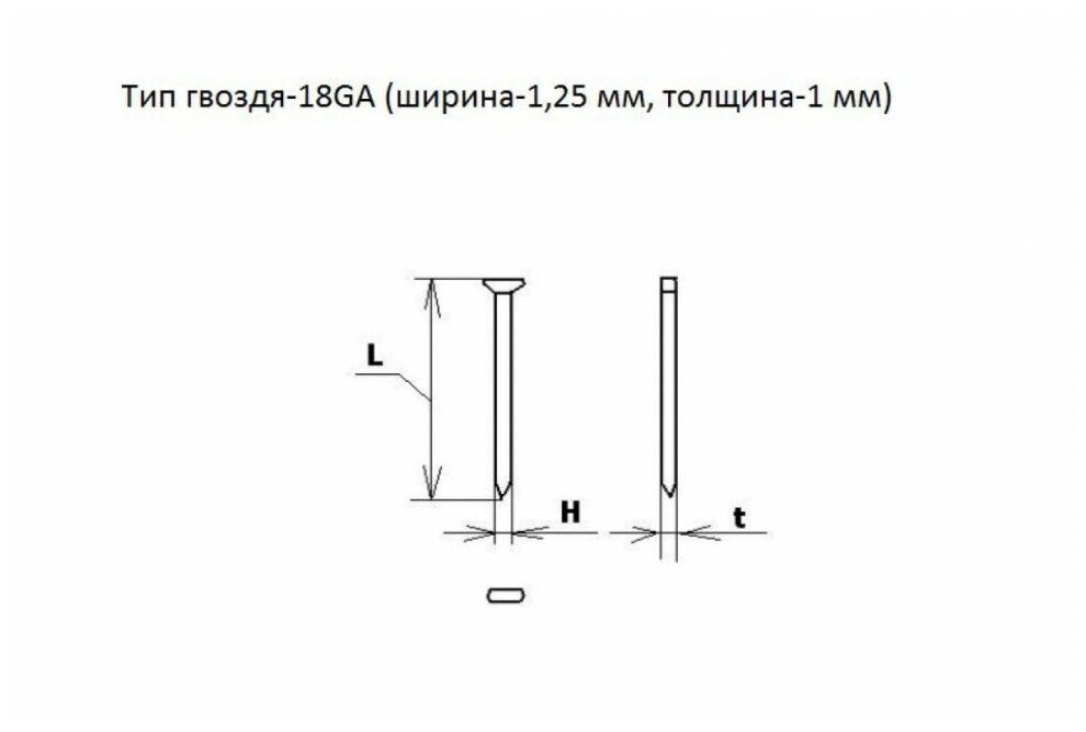- Тип гвоздя: 18GA (ширина-1,25 мм, толщина-1 мм);