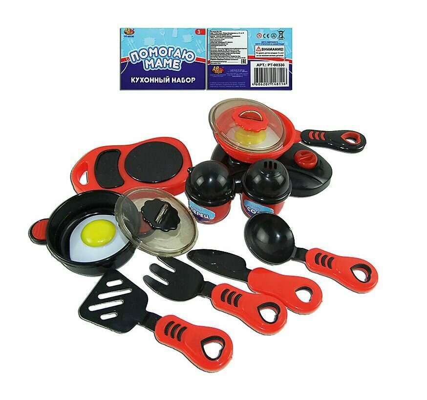 Игровой набор ABtoys Помогаю Маме Набор посуды для кухни с продуктами PT-00330 идеально подойдет для использования на игрушечной кухни. В набор посудки входит: плитка для разогрева еды, весы, комплект столовых приборов, кастрюля, сковородка, солонка и перечница, а также муляж яичницы. Все эти предметы будут незаменимы на игрушечной кухни вашей юной хозяйки. Набор будет прекрасным дополнением для игрушечной кухни и поможет ребенку в игровой форме осваивать навыки хорошей хозяйки.