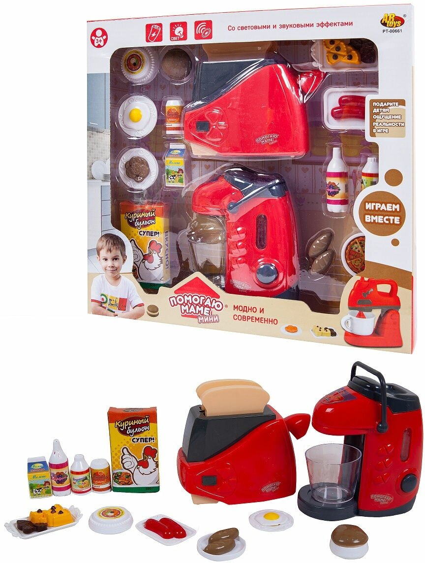 Игровой набор ABtoys Кухонная техника с продуктами. С таким набором дети смогут приобрести первые важные навыки обращения с бытовой техникой в безопасной игровой форме: понять принципы использования утюга или пылесоса и применить свои знания, используя игрушки в интересных сюжетных играх. С этим удивительным комплектом ребенок не только увлекательно проведет время, но и расширит свой кругозор.