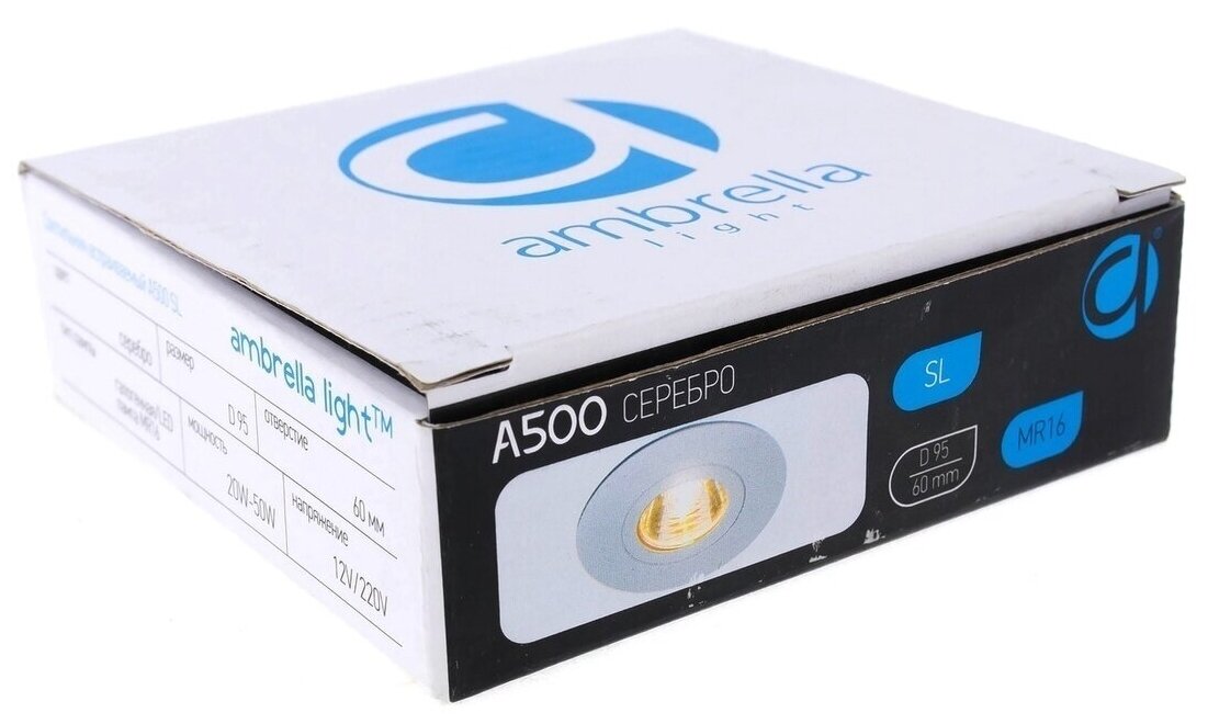 Встраиваемый светильник A500 SL - продукт известной компании Ambrella (Россия). Имеет максимальную мощность 50 Вт, освещает площадь до 4 кв. м. Отлично подойдет для таких мест, как прихожая и коридор, гостиная, спальня, кухня, кабинет, офис. Впишется в интерьеры следующих стилей: классический.