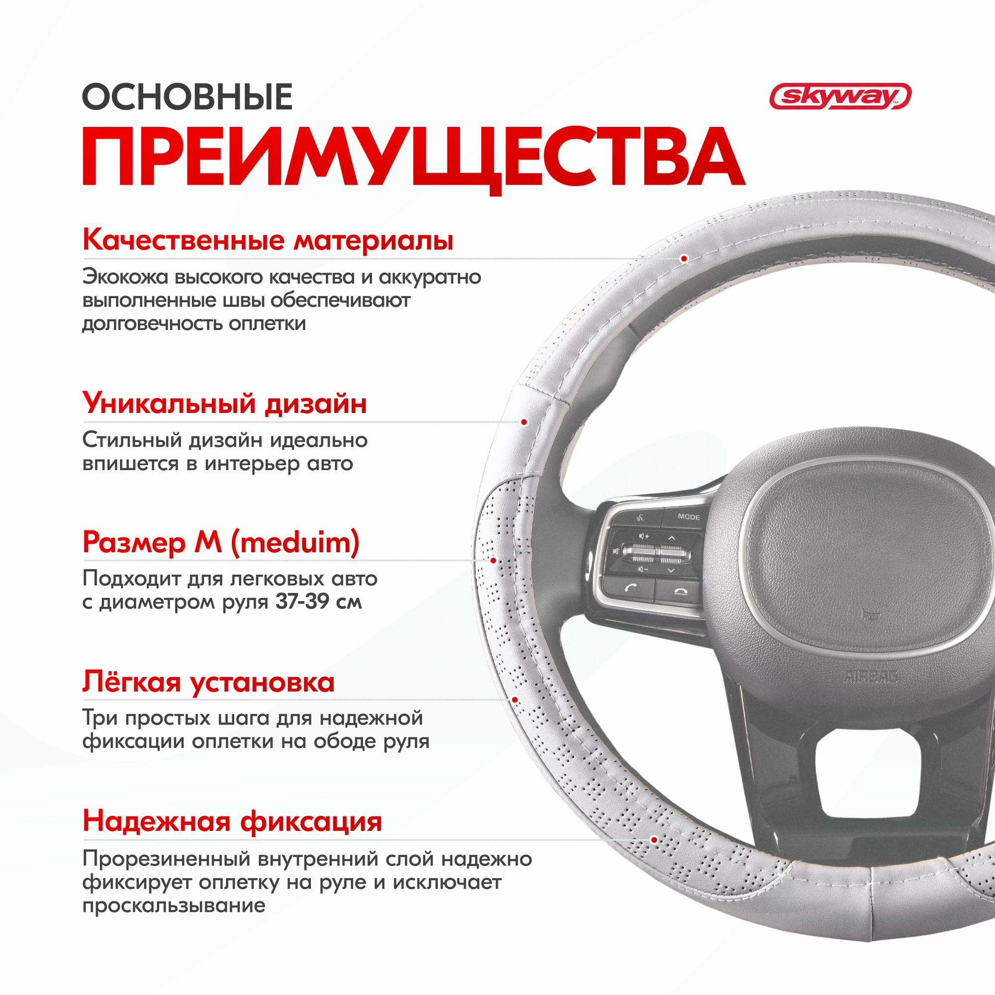 Оплетка на руль SKYWAY S01102048 (размер: M)