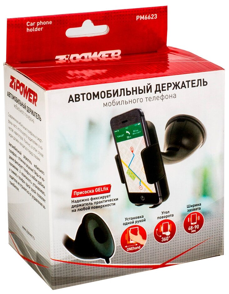 В современных условиях уже невозможно представить свою жизнь без огромного количества гаджетов. Мобильные телефоны, планшетные компьютеры, навигаторы прочно вошли в наш повседневный быт. Чтобы сделать их использование максимально комфортным, а также учитывая то, что значительную часть времени сегодня человек проводит в автомобиле, Zipower представляет необходимые аксессуары – специальные автомобильные держатели для разнообразных устройств. Они позволят не только безопасно использовать то или иное устройство, но и дадут возможность просто и надежно закрепить его для подзарядки. Преимущества Присоска Gelfix надежно фиксирует держатель на любой пластиковой или стеклянной поверхности Установка телефона одной рукой Ударопрочный пластик – держатель прослужит вам долго Мягкие накладки надежно фиксируют телефон Ширина захвата: 48–90 мм. Угол поворота: 360°
