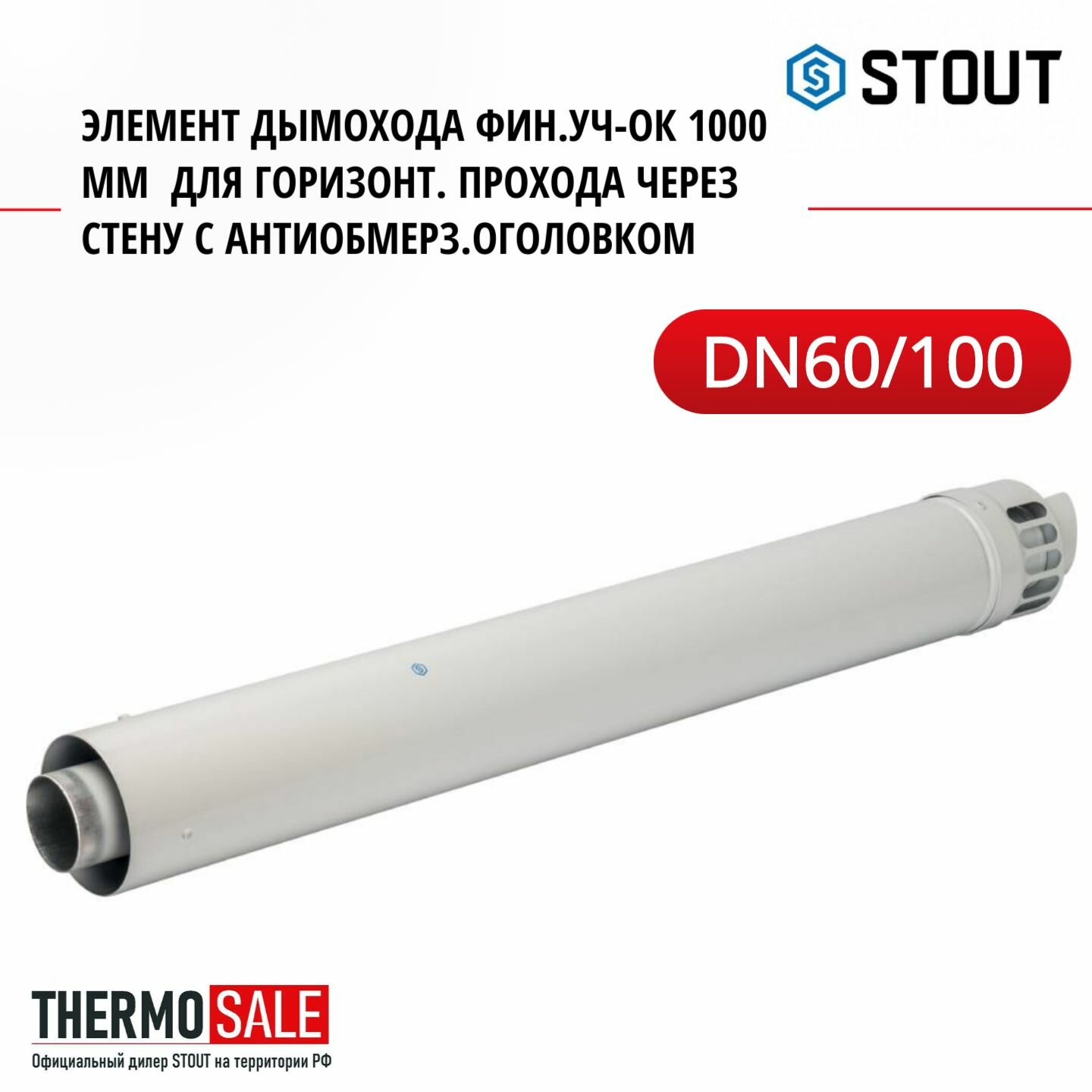Длина трубы 1000 мм, диаметр 60/100 мм. Поставляется вместе с хомутом и антиобледенительным оголовком. Произведено в Италии.