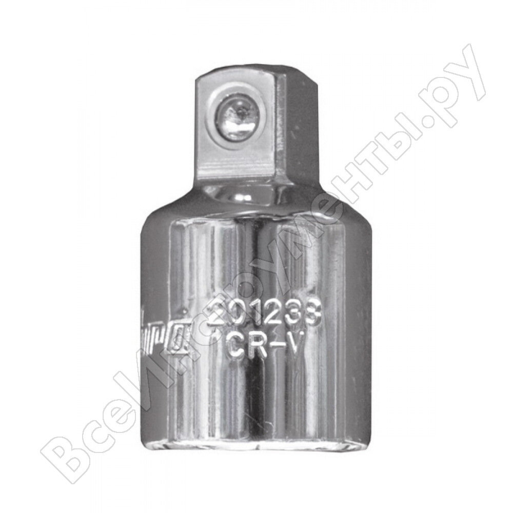 Переходник OMBRA 1/2"DR(F)*3/8"DR(M). Переходник, основное назначение которого, использование в системе сборного монтажного инструмента отдельных элементов с сопредельным присоединительным профилем, меньшим по размеру. При использовании понижающего адаптера следует помнить, что ПДН для элементов различных систем существенно различаются по значению и поэтому при использовании адаптера следует прилагать рабочие нагрузки исходя из меньшего размера применяемого привода. Изделие изготавливается из хромованадиевой стали, в соответствии со стандартом DIN 3123, имеет зеркальное хромоникелевое покрытие. 1/2"DR(F мама)х3/8"DR(M папа).Тип хвостовика: шестигранныйРазмер: 1/2"F, 3/8"