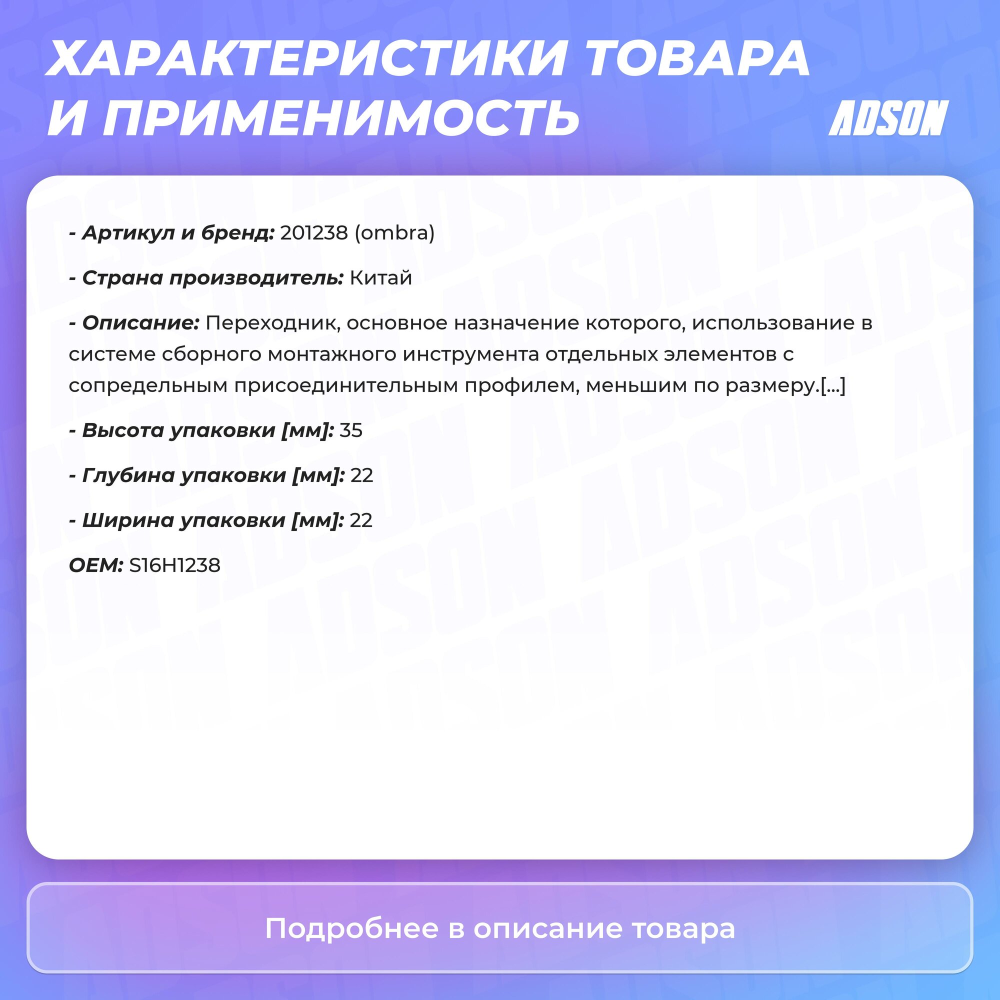 Сервис сравнения цен СкидкаГИД предлагает сравнить цены на товар «Переходник для торцевых головок Ombra 201238»
