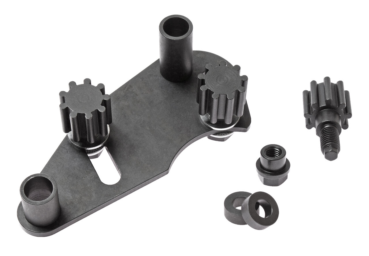 - Фиксирующее устройство для зубчатых шкивов распределительного вала используется в ходе замены приводных ремней для типов двигателей, перечисленных ниже.