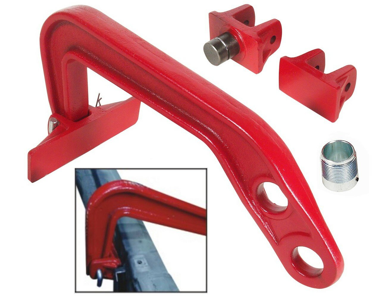 Вытяжной крюк со сменными упорами, 4т JTC - это практичное и легкое в использовании приспособление, активно применяющееся как в небольших, так и в крупных сервисных центрах по ремонту автомобилей. С помощью данного инструмента можно осуществить аккуратную рихтовку капота, дверных стоек, а также деталей ходовой части. Данная модель обладает высокопрочной конструкцией, что является гарантией безопасной и продолжительной работы.