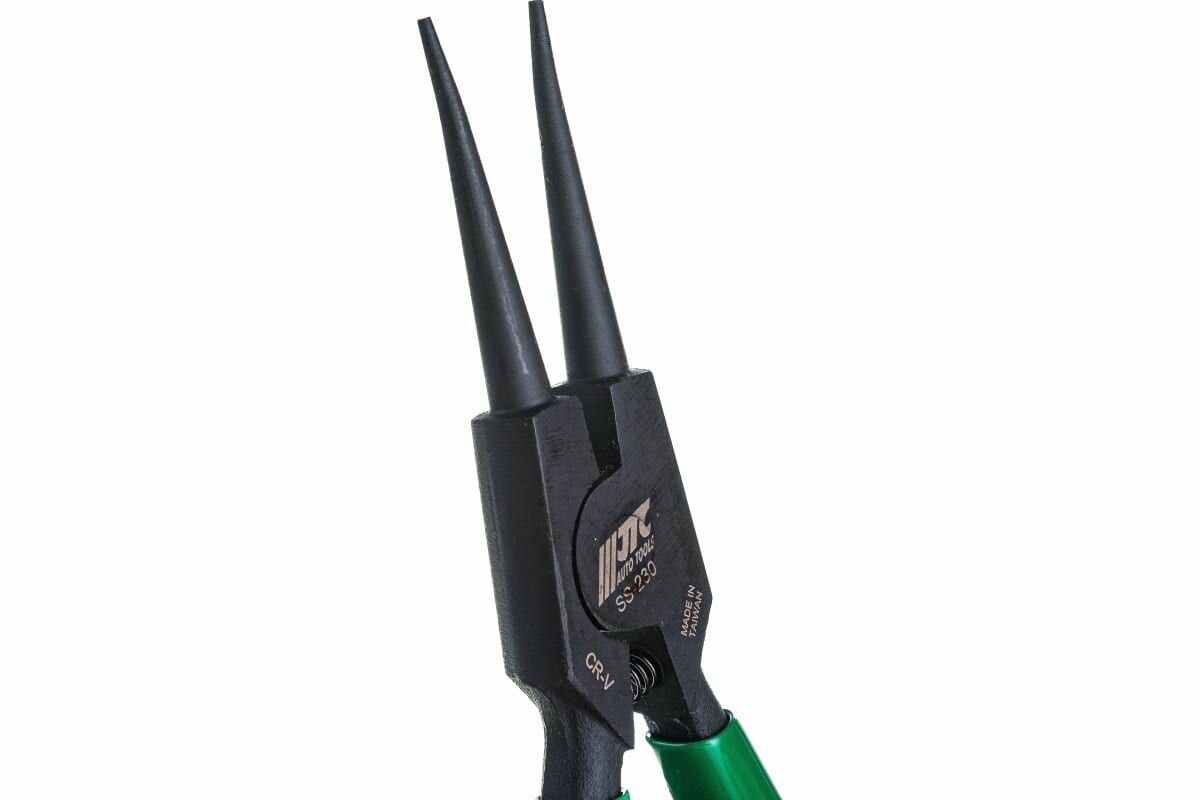 Съемник стопорных колец внешний JTC-. Изготовлен из хром-ванадиевой стали, что обеспечивает высокую прочность и жесткость инструмента. С помощью данной модели демонтаж требуемых элементов становится значительно быстрее и проще.