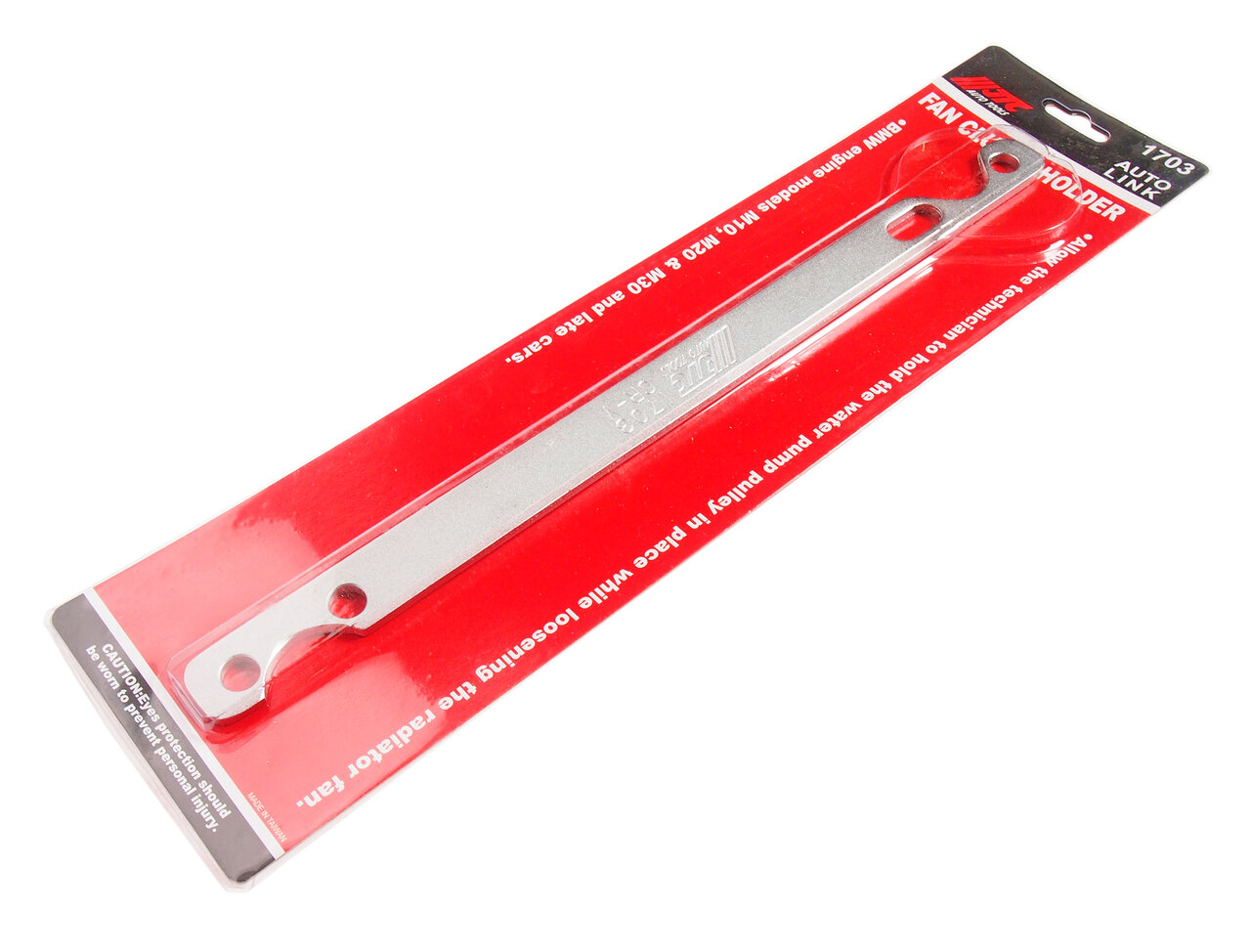 Устройство, позволяющее оперативно произвести фиксацию или деинсталляцию муфты вентилятора охлаждения. Приспособление подготовлено для использования при ремонте силовых агрегатов автомобилей марки BMW спортивных модификаций M10, M20, M30. Инструмент изготавливается из цельнометаллического сплава и покрыт защитным слоем от образования ржавчины.