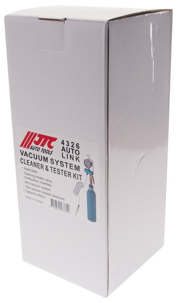 Комплектация Баллон объемом 650 см³.Вакуумметр со шлангом и насадкой для подключения.ОписаниеУстройство предназначено для очистки камеры сгорания и цилиндро-поршневой группы.В результате осуществляется достаточно полное очищение камеры сгорания, выравнивается компрессия по цилиндрам двигателя, улучшается равномерность его работы.Восстанавливает подвижность клапанов и удаляет отложения со стенок камеры сгорания, из канавок поршневых колец, а также ликвидирует налет во впускном коллекторе, восстанавливает компрессию.Применяемые средства: JTC-4255P, LiquiMoly MTX Vergaser Reiniger или аналоги.Обладает целым комплексом присадок с сильным растворяющим эффектом, поэтому сначала удаляются все легкорастворимые лаковые и смолистые отложения. Затем в действие вступает комплекс ингредиентов данного продукта, обладающего высокими проникающими свойствами.ПрименениеЧистка впускных клапанов.Чистки камеры сгорания.Чистка вакуумной системы.Тестирования вакуумн.