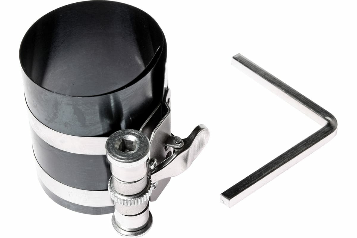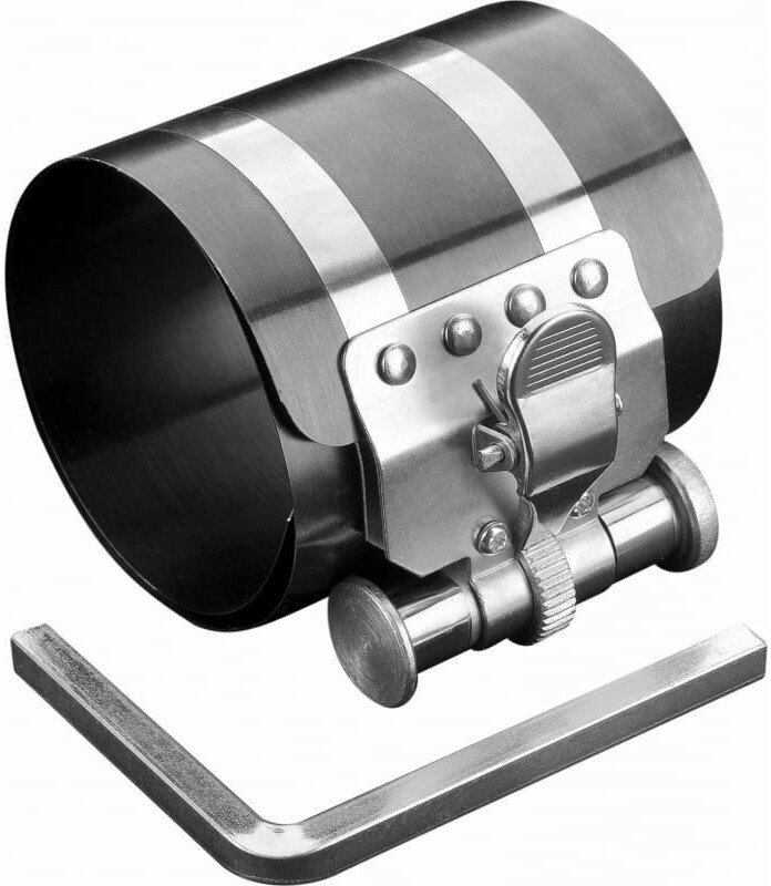 Оправка поршневых колец JTC JTC- применяется для сжатия поршневых колец при установке поршней в цилиндры двигателя.Преимущества Высокое качество материалов – изготовлена из прочных и долговечных сплавов, что обеспечивает долгий срок службы инструмента Широкий диапазон размеров – подходит для поршневых колец диаметром от 90 до 175 мм, что делает инструмент универсальным Точная установка колец – обеспечивает аккуратное и безопасное вставление колец без повреждений, что важно для надежной работы двигателя Компактный и прочный дизайн – позволяя легко хранить и транспортировать инструмент, а также выдерживать интенсивные нагрузки при эксплуатации
