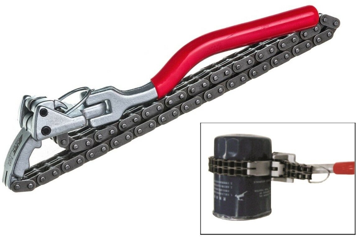 Съемник масляного фильтраJTC JTC-, цепной, усиленный, 60-160мм, длина цепи 520мм - простое приспособление, предназначенное для извлечения деталей из труднодоступных мест, что обеспечивается наличием удобной изогнутой ручки с функцией поворота на 180 градусов. Длина рукояти составляет 185 мм.Преимущества Подходит для всех типов масляных фильтров Изогнутая рукоятка позволяет работать в труднодоступных местах Рукоятка поворачивается на 180 градусов