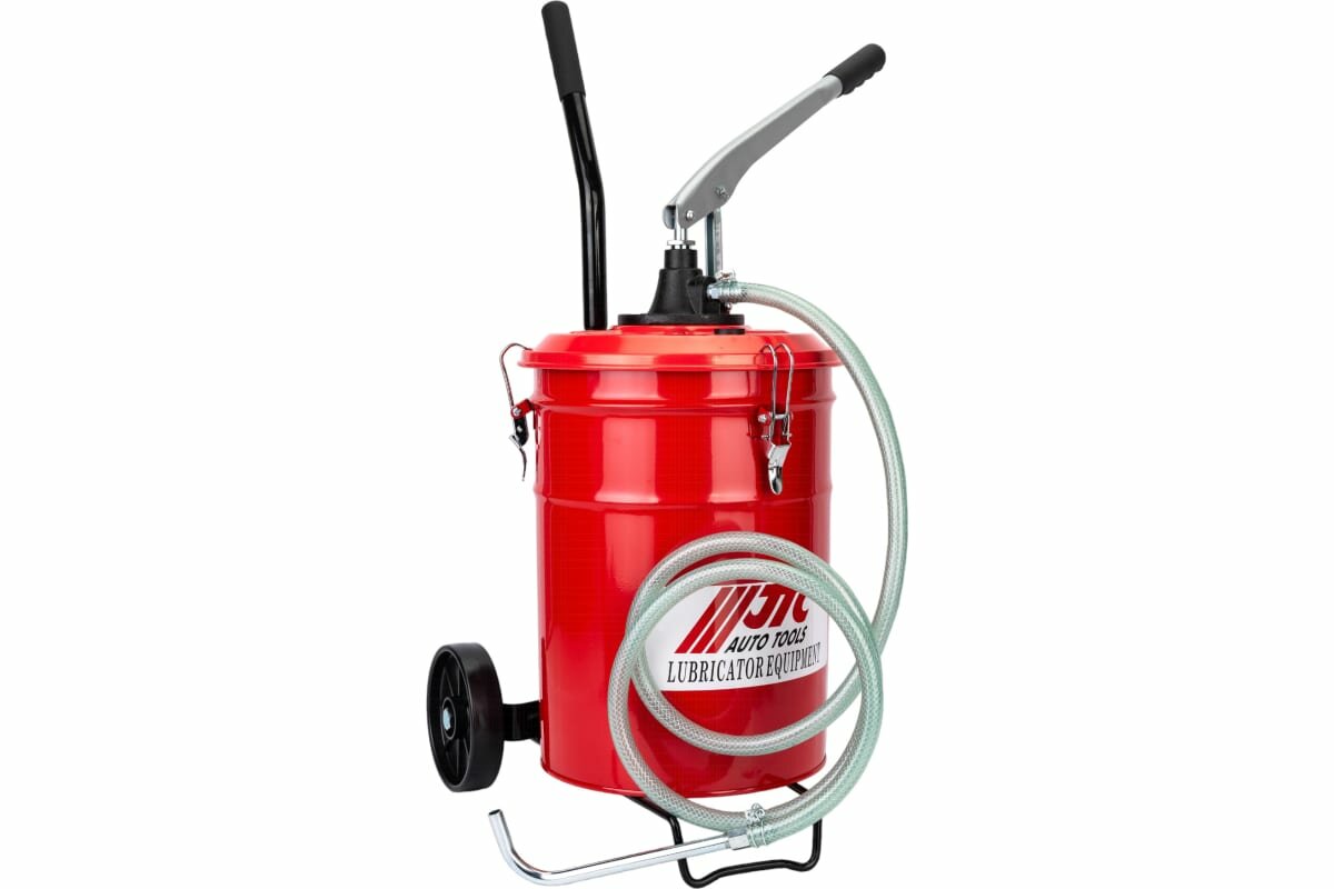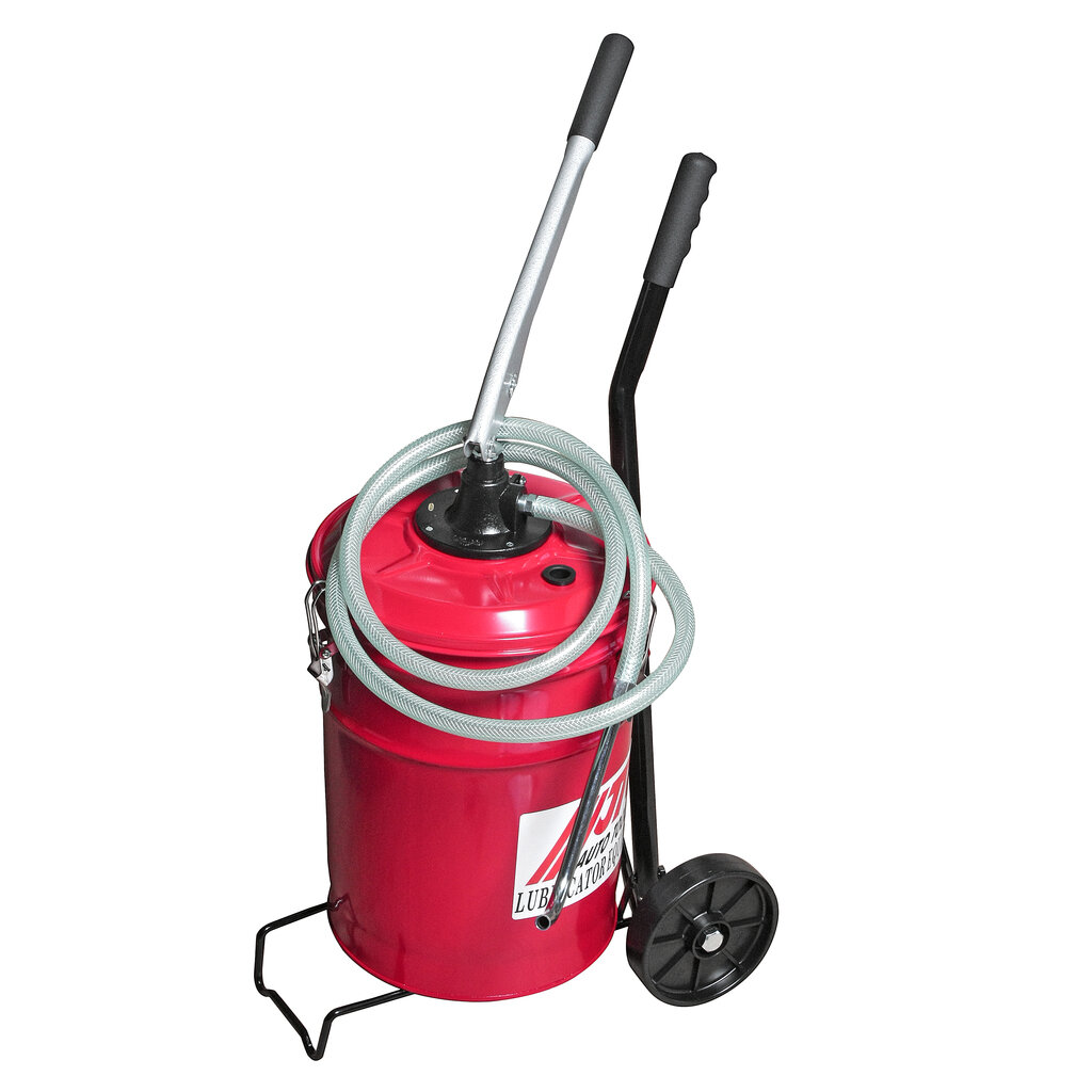 Установка для подачи масла JTC JTC-, ручная, емкость 20 л - предназначена для подачи смазочных материалов и трансмиссионного масла на различные механизмы, детали и узлы автомобиля.Преимущества Надежная конструкция — бак выполнен из высокопрочной стали, и оснащен специальными замками-защелками (исключается потеря масла) Внешние детали покрыты маслостойкой краской Два колеса большого диаметра обеспечивают плавный ход установки (не повреждая при этом поверхность) Длинный шланг позволяет производить подачу смазки с любого удобного для оператора места Нагнетатель приводится в действие усилием оператора посредством специальной эргономичной рукоятки с широкой поверхностью хвата Уровень вязкости перекачиваемых жидкостей: до SAE 40 Раздаточный шланг: 183 см Производительность: 65 куб.см/цикл Емкость бака: 20 л