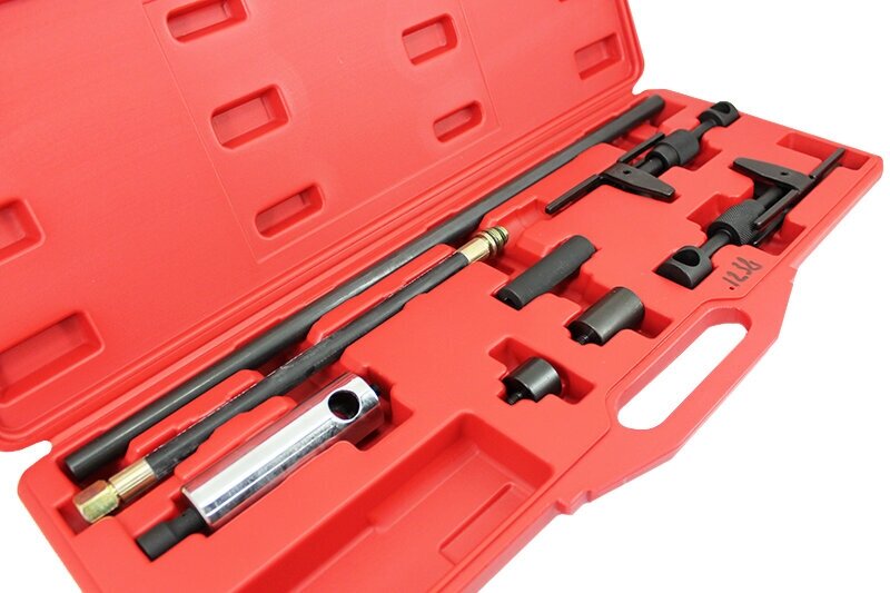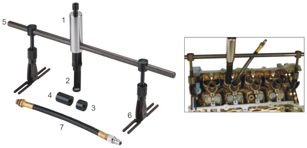 - Представляет собой полный набор инструментов для установки и извлечения пружины клапана без необходимости снятия головки блока цилиндров двигателя.