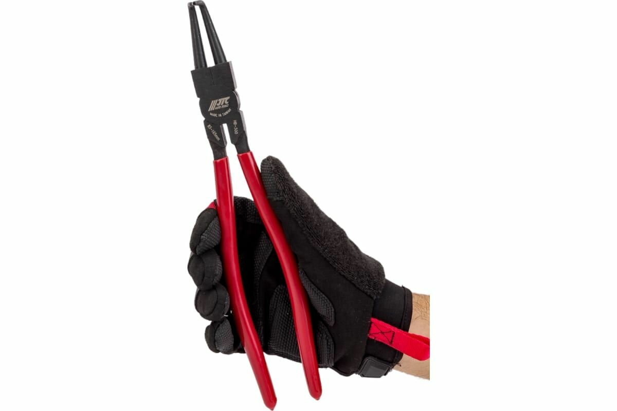Съемник внутренних стопорных колец JTC . Изготовлен из хром-ванадиевой стали, что обеспечивает высокую прочность и жесткость инструмента. С помощью данной модели демонтаж требуемых элементов становится значительно быстрее и проще.