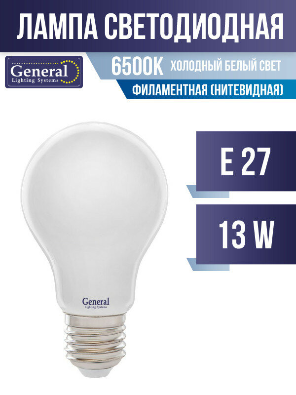 General ЛОН A60 E27 13W 6500K 6K 60x105 филамент (нитевидная) матовая 649940 (арт. 583841)