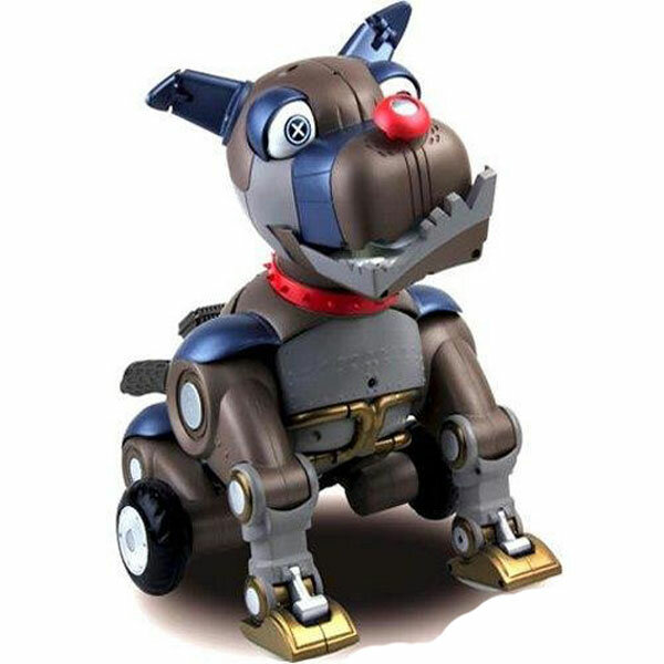 Забавный мини-робот в виде собаки достаточно прост в обращении и готов двигаться, пока не сядут батарейки. Игрушка может ездить прямо и по кругу, менять положение ног и даже открывать пасть, как настоящая собака. Кнопкой на носу робота можно поменять значки во вращающихся глазах.