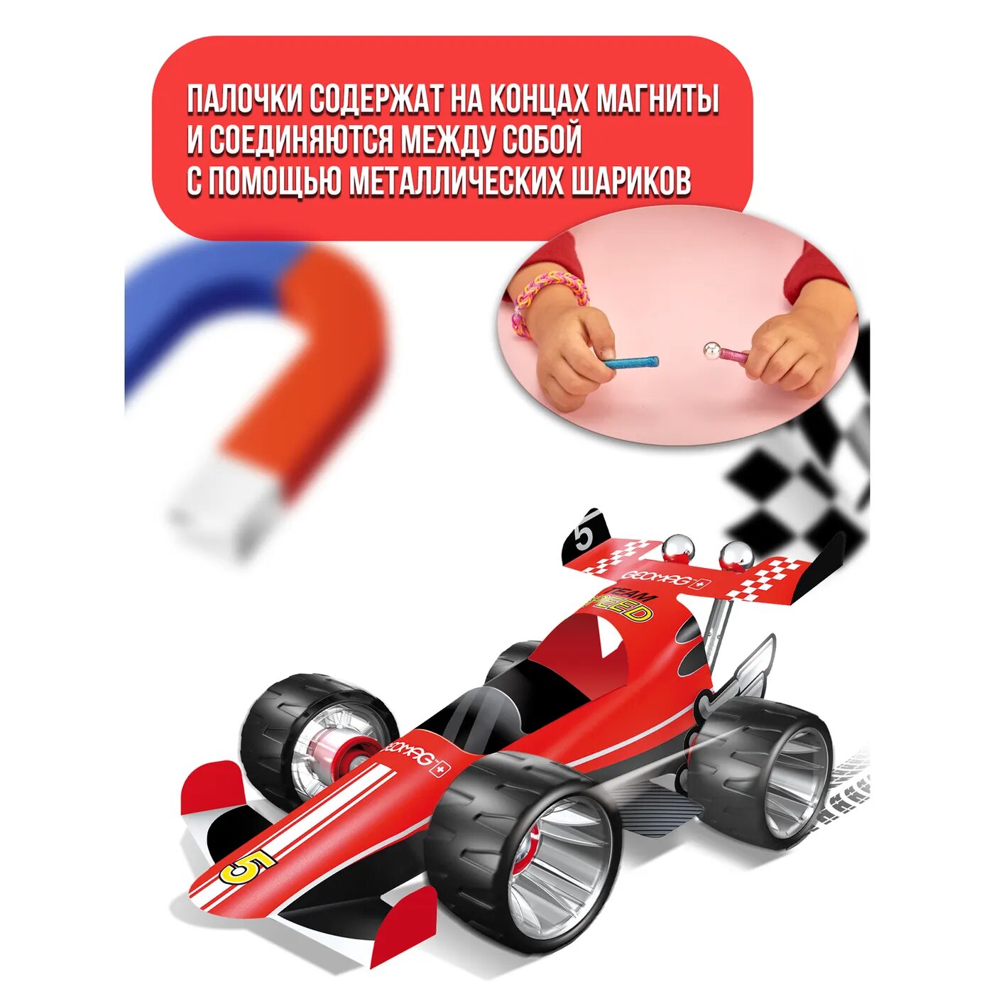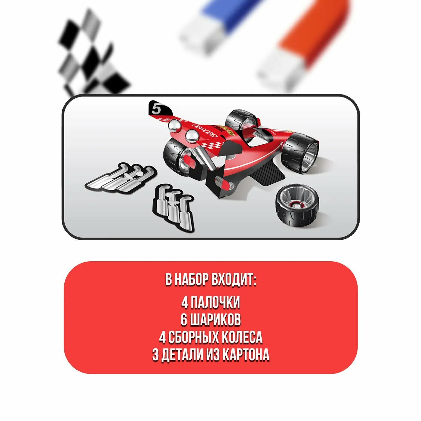 Конструктор магнитный Geomag Машина гоночная красная 25 элементов 710