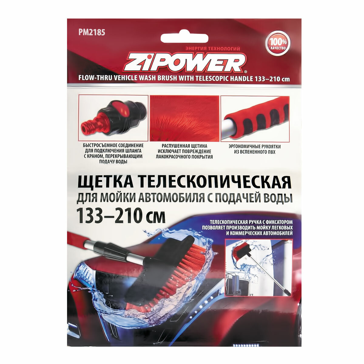 | Особенности | антискользящие накладки на рукоятке; не царапет лакокрасочное покрытие; подача воды; телескопическая рукоятка |