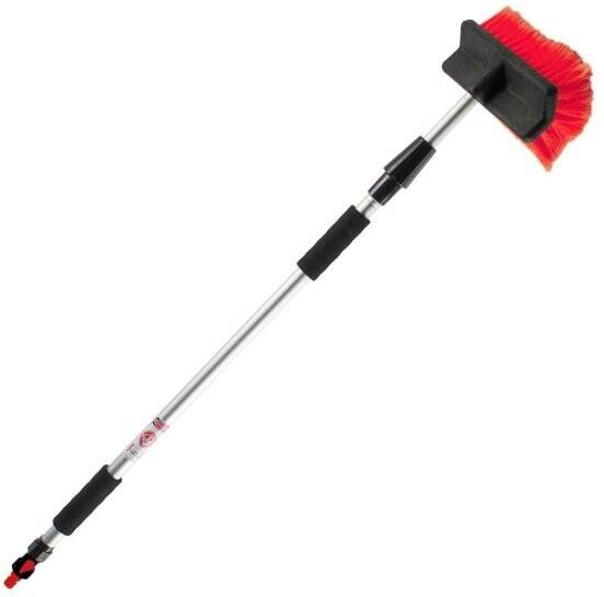 Распушенная щетина исключает повреждение лакокрасочного покрытия. Усиленная телескопическая ручка не прогибается даже а максимальном вылете. Надежный узел фиксации предотвратит складывание во время работы. Эргономичная рукоятка из вспененного ПВХ повышает комфорт выполнения работ. Быстросъемное соединение для подключения шланга.