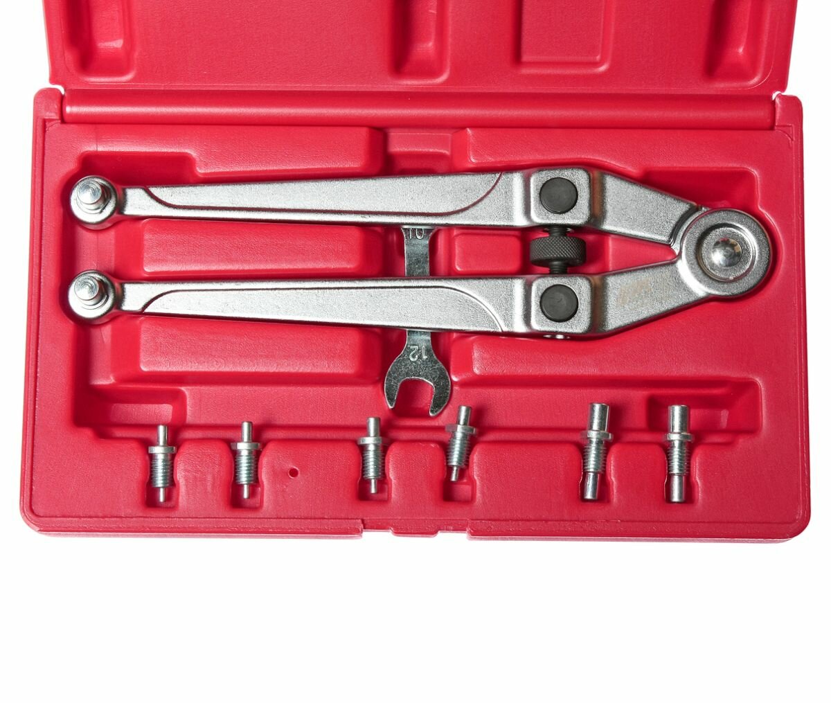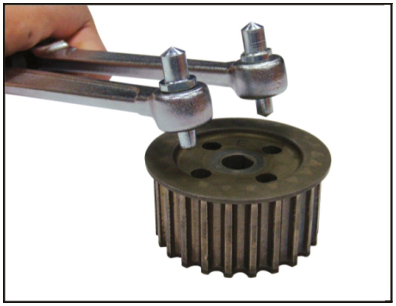 - Инструмент изготовлен из высококачественной стали и предназначен для фиксации или снятия шкивов с двумя отверстиями.
