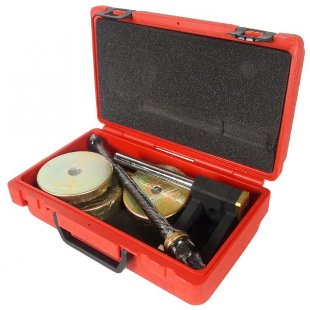 Комплект цельнометаллических инструментов, изготовляемых из хром-ванадиевого сплава, который отличается своей высокой прочностью. Приспособления используются при ремонте подвески. Устройства позволяют снимать и устанавливать сайлентблоки подрамника подвески. Инструменты отлажены для ремонта автомобилей BMW E53.