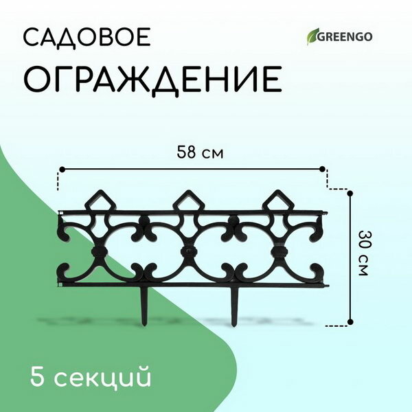 Ограждение 22 х 290 см 5 секций пластик чёрное "Парковый" 3305317 Кострома Пласт