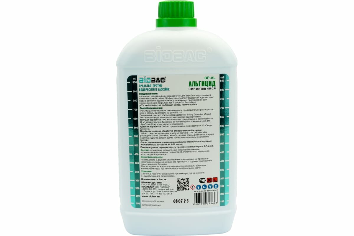 Жидкость для бассейна BioBac Альгицид непенящийся M BP-AL 1 л БИОБАК М BP-AL