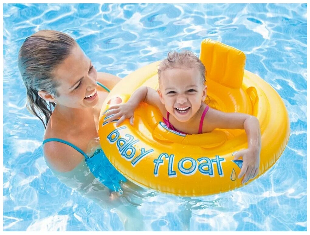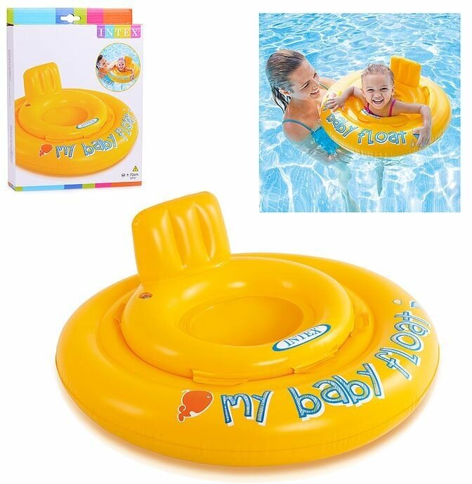 Круг для плавания My baby float, с сиденьем, d-70 см, от 6-12 месяцев, EU INTEX. • Диаметр круга: 70 см.• Адаптированное для подгузников сиденье с гладкими бортами отверстий для ног.• Ограничение по весу: 11 кг.• Есть комплект для ремонта.• Материал: поливинилхлорид.• Соответствует требованиям безопасности и стандартам качества продукции.