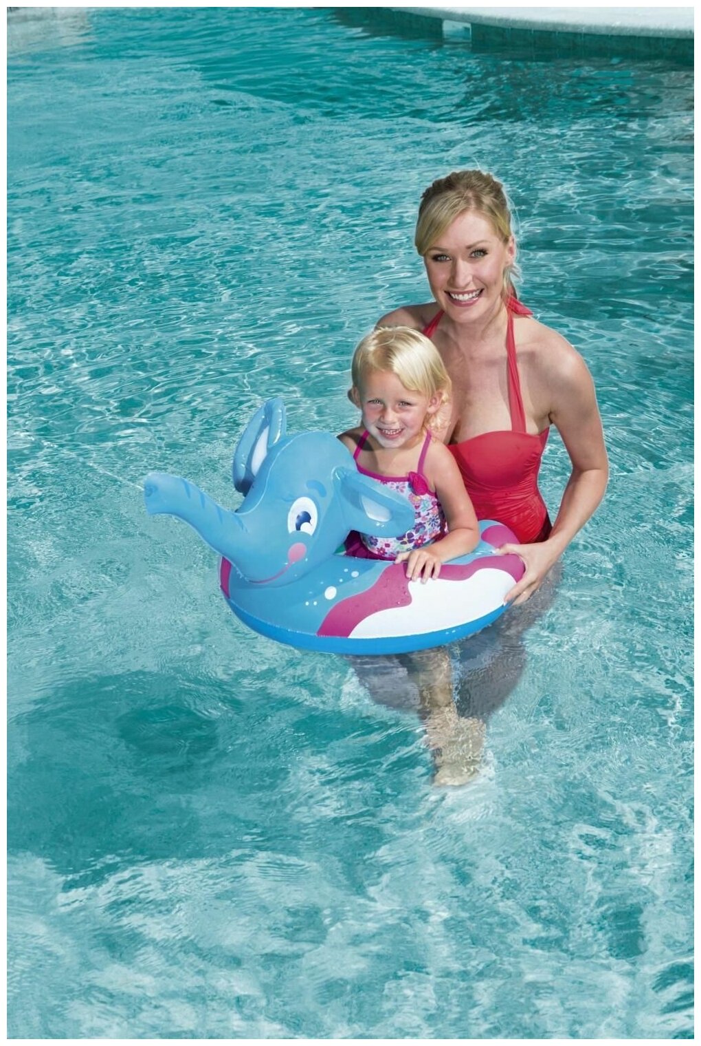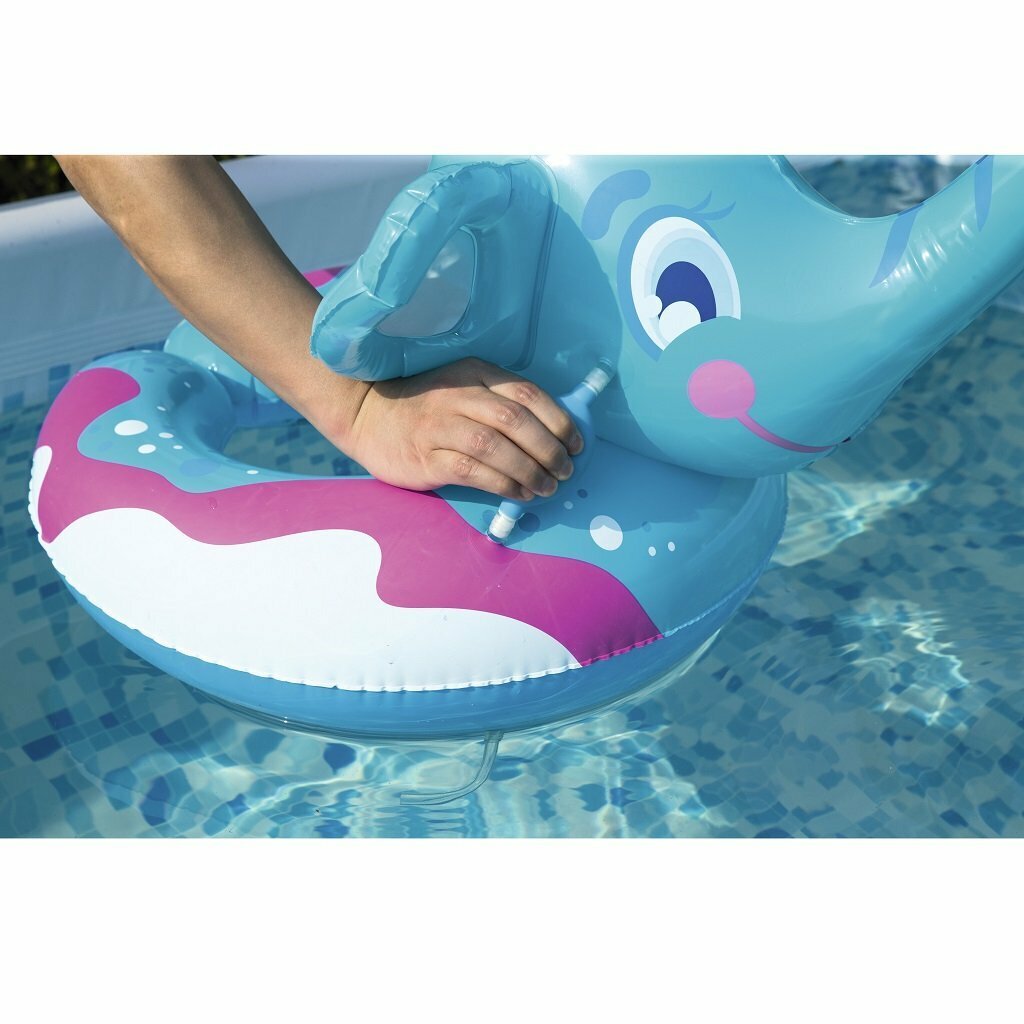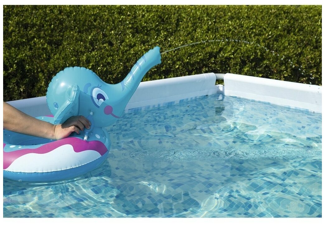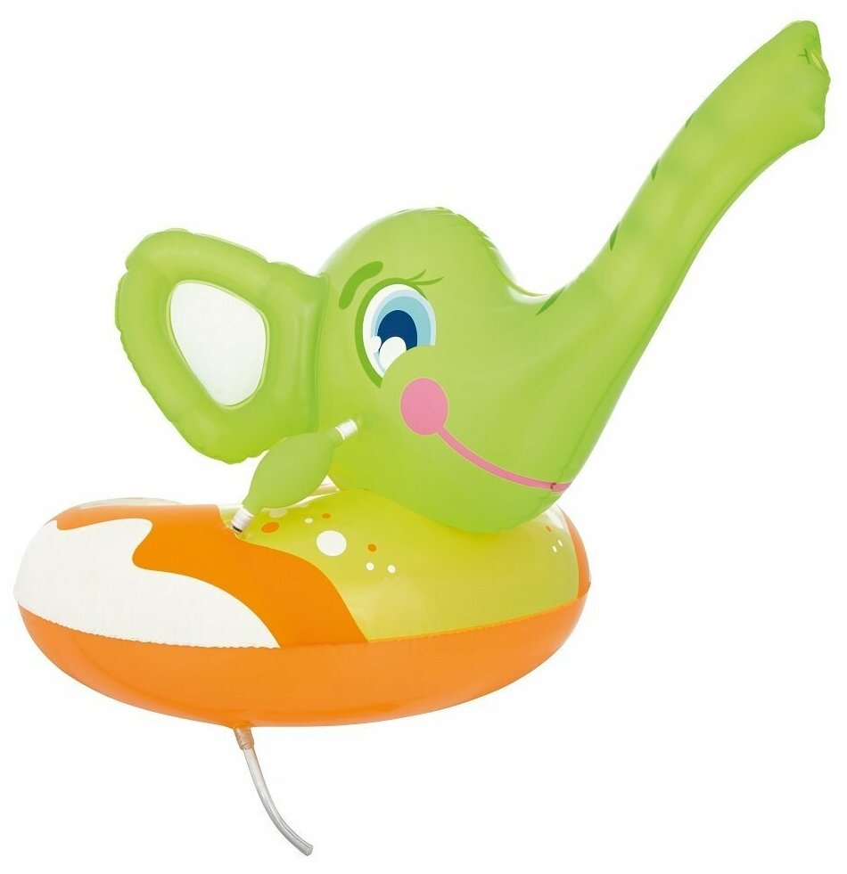 Надувной круг «Слоник» может стать весёлым развлечением на пляже и отличной страховкой для малышей, которые неуверенно чувствуют себя в воде. Для уроков плаванья он будет хорошей поддержкой, а на пляже может заменить кресло и позволить удобно нежиться под лучами солнца. Приятный мягкий на ощупь материал не вызывает раздражений на коже и имеет отличные показатели износостойкости. Под правым ухом слоника находится специальная помпа-ручка, которая отвечает за разбрызгивание водички из хобота. Забор воды происходит при помощи трубки, которая выходит через дно.