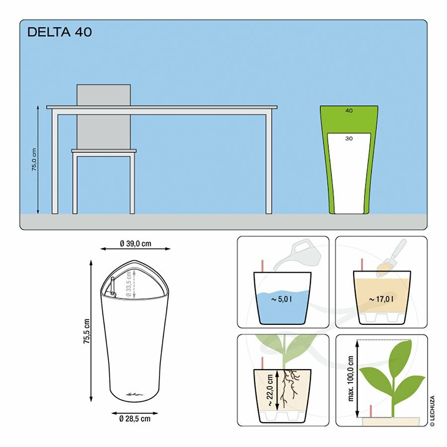 Кашпо LECHUZA напольное с автополивом Delta 17л 40x75.5 см 39x40x75.5 см белый блестящий