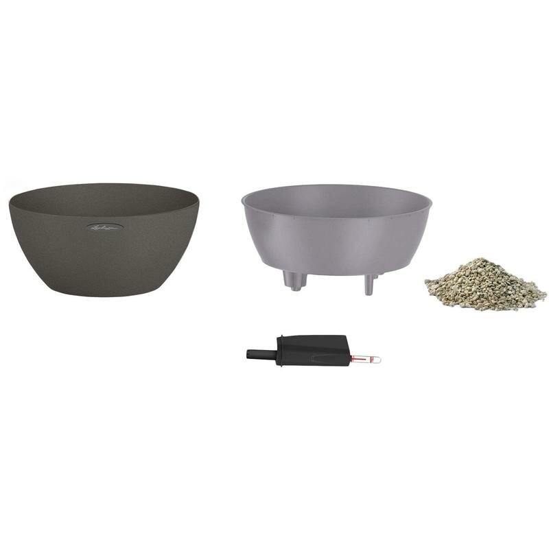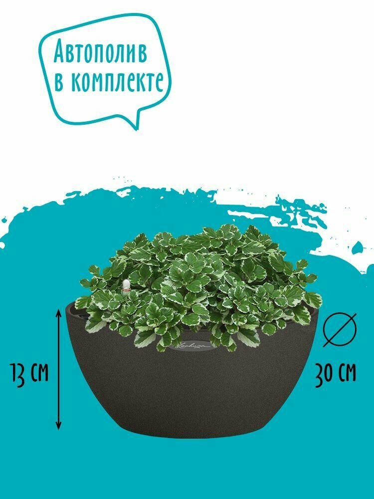 Lechuza Stone - это изящное кашпо округлой формы, выполненное из прочного и безопасного пластика. Модель отличается красивым покрытием под камень, оснащена системой автоматического полива. Система начинает работать через 2-4 месяца после пересадки цветка, когда корни прорастут вниз. Автополив функционирует с помощью резервуара, в который заливают воду, затем она самостоятельно поступает к растению. На постоянной основе системой пользоваться не рекомендуем, она предназначена для коротких периодов времени, когда нет возможности самостоятельно осуществлять уход.