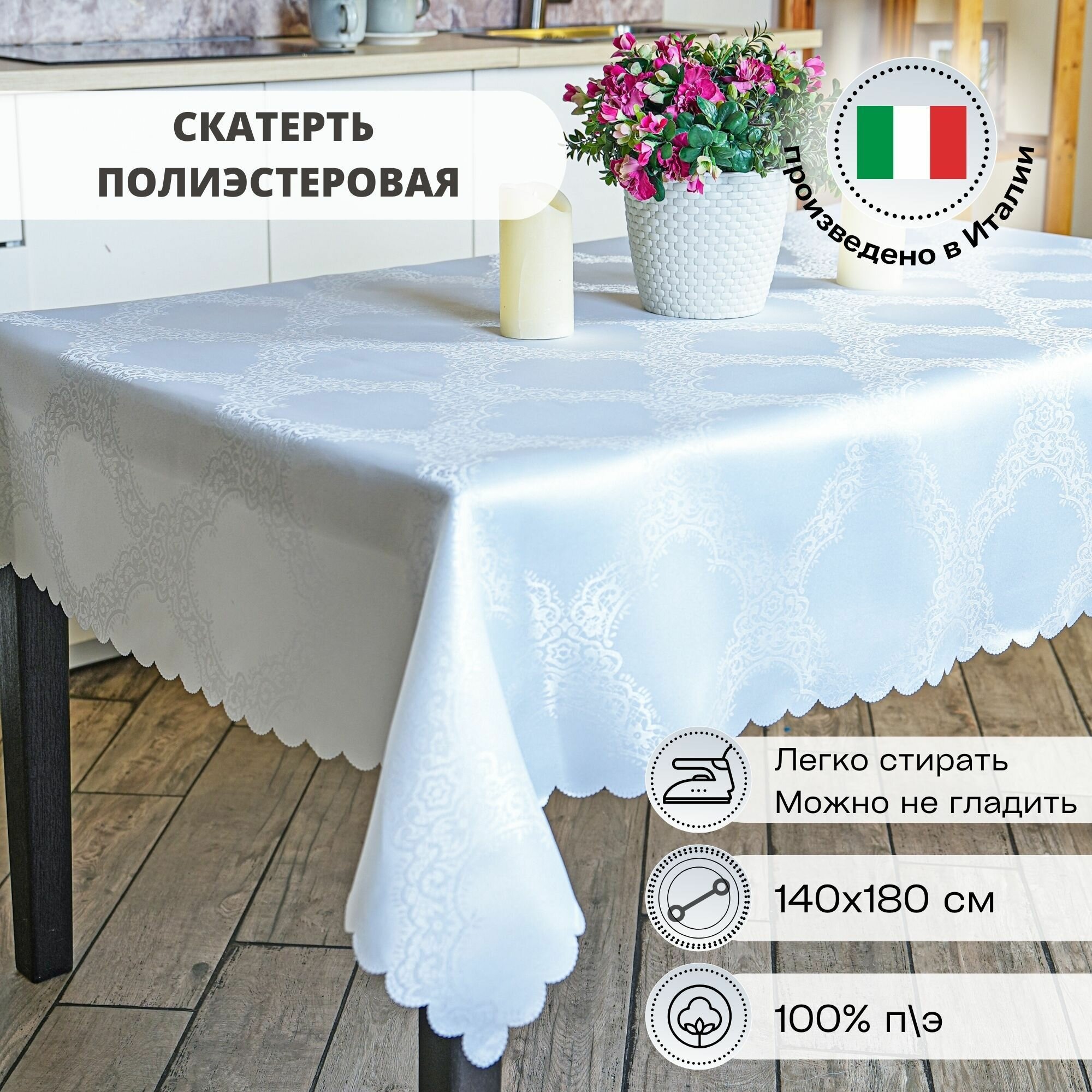 Скатерть на стол 140х180 см Grand Textil. Скатерть подойдет на случай праздника, дружеского застолья или повседневного использования. Коллекция товаров для дома итальянского бренда выполнена в разнообразной цветовой гамме, что позвляет подобрать скатерть прямоугольную именно под ваш декор для дома. / Скатерть тканевая на стол выполнена из качественного, плотного материала. Состав: 100% полиэстер. Скатерти из полиэстера нового поколения легко отстирываются от загрязнений любой сложности, быстро сохнут, не мнутся, не линяют, не теряют цвет, сохраняя первоначльный вид на многие годы. Скатерти при необходимости можно стирать в машинке при температуре до 30° С. / Скатерть для стола - это необходимый аксессур для дома и кухни. В нашем каталоге большой выбор скатертей на стол тканевых: скатерть белая; скатерть праздничная для кухни с яркими и сочными принтами; скатерть на стол прямоугольная в теплых бежевых и молочных тонах; скатерть однотонная, которую можно дополнить дорожкой на стол.