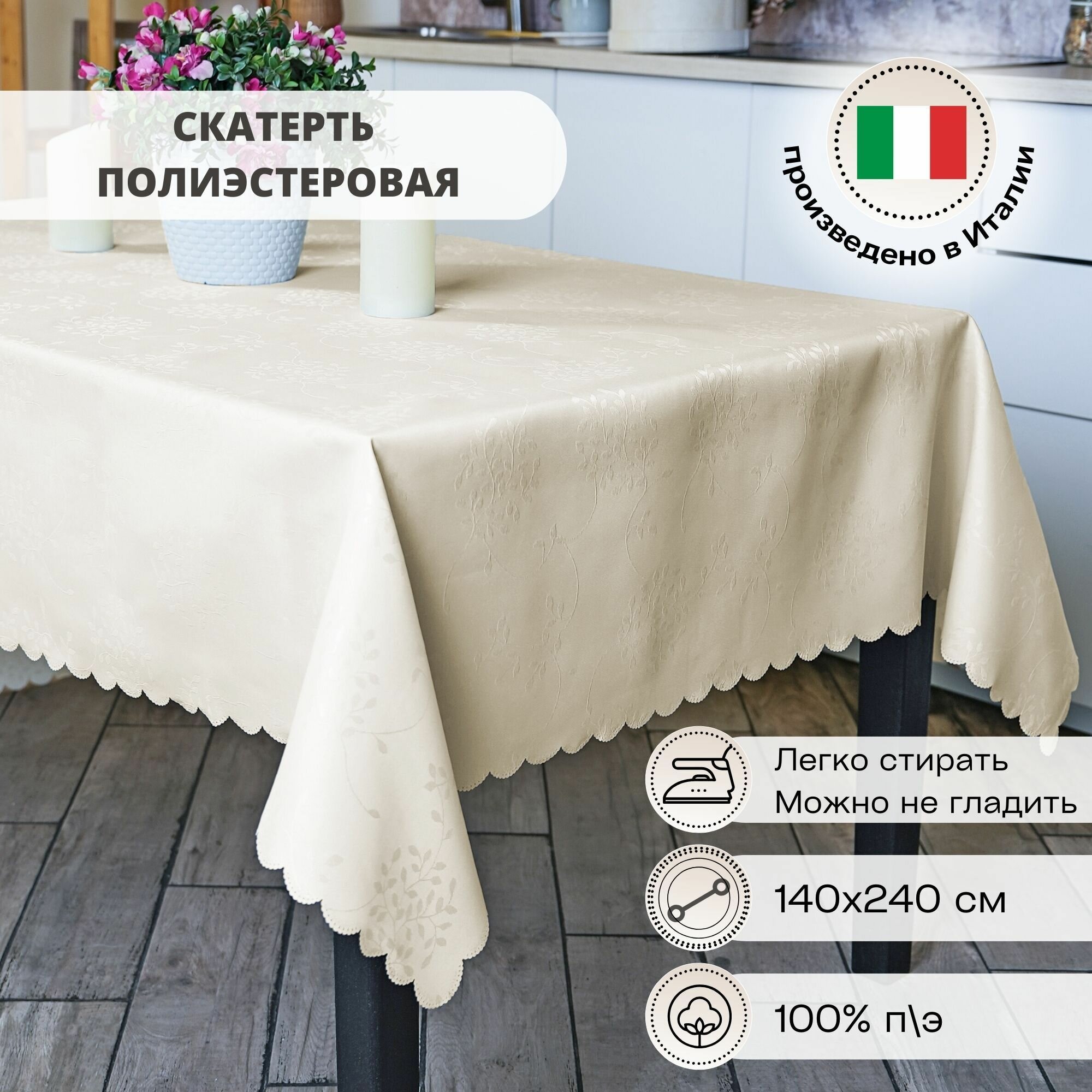 Скатерть на стол 140х240 см Grand Textil. Скатерть подойдет на случай праздника, дружеского застолья или повседневного использования. Коллекция товаров для дома итальянского бренда выполнена в разнообразной цветовой гамме, что позвляет подобрать скатерть прямоугольную именно под ваш декор для дома. / Скатерть тканевая на стол выполнена из качественного, плотного материала. Состав: 100% полиэстер. Скатерти из полиэстера нового поколения легко отстирываются от загрязнений любой сложности, быстро сохнут, не мнутся, не линяют, не теряют цвет, сохраняя первоначльный вид на многие годы. Скатерти при необходимости можно стирать в машинке при температуре до 30° С. / Скатерть для стола - это необходимый аксессур для дома и кухни. В нашем каталоге большой выбор скатертей на стол тканевых: скатерть белая; скатерть праздничная для кухни с яркими и сочными принтами; скатерть на стол прямоугольная в теплых бежевых и молочных тонах; скатерть однотонная, которую можно дополнить дорожкой на стол.