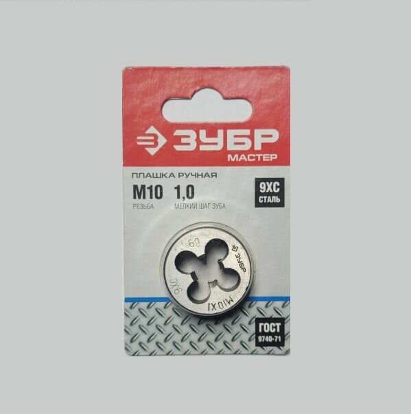 Плашка ЗУБР МАСТЕР круглая ручная мелкий шаг М10x1.0