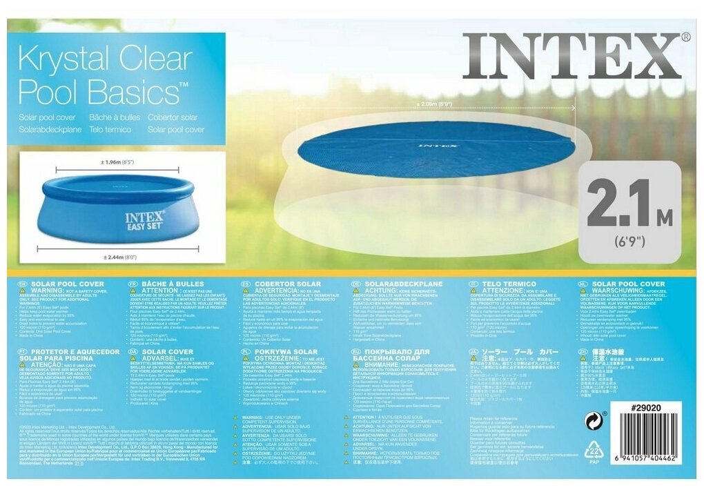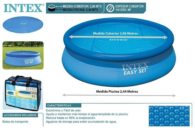 Intex согревающее покрывало предназначено для сохранения температуры воды в бассейне. Это покрывало изготовлено из полупрозрачной пленки которая имеет многочисленное количество ячеек с воздухом. Благодаря этому в солнечный день вода в бассейне нагревается быстрее нежели без него. В ночное и вечернее время суток покрывало сдерживает испарение воды что не дает ей остывать. Еще одна приятная особенность его использования является защита от попадания мусора.