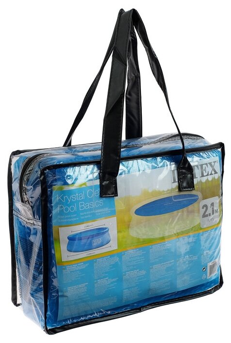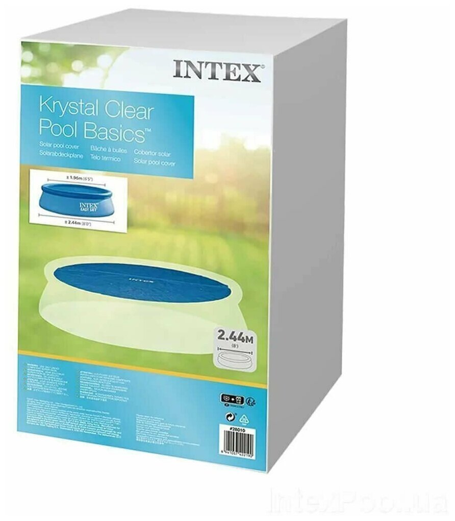Тент Intex убережет ваш бассейн от загрязнений в виде мусора или насекомых. Материалом изготовления служит плотный полупрозрачный полиэтилен (110 г/кв.м.), благодаря этому, в солнечную погоду вода в бассейне лучше прогревается, а ночью удерживает накопленное тепло. Тент не надо крепить, он просто плавает на поверхности воды. В пленке образуются воздушные пузырьки, которые создают парниковый эффект. Данная модель для любых бассейнов серии Intex Easy Set и Metal Frame с диаметром 244 см.