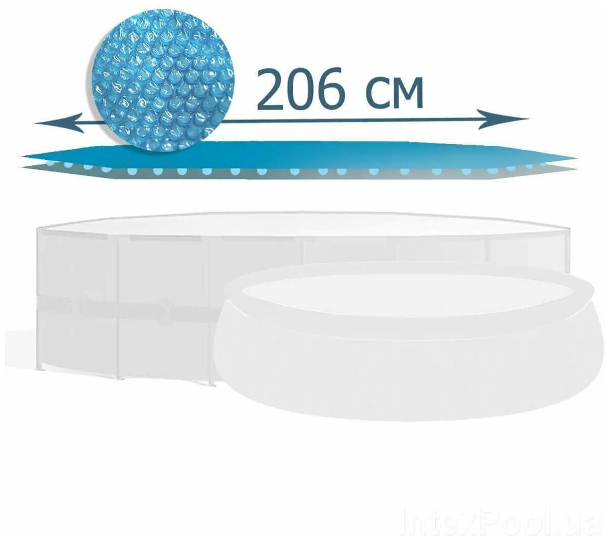 Обогревающий тент-покрывало для бассейнов "Easy Set" диаметром 244 см (нижний диаметр). Не крепится к бассейну, достаточно просто положить его на поверхность воды и расправить по всей площади. Имеет двойной эффект: днём позволяет бассейну прогреваться в разы быстрее за счёт создания парникового эффекта (ячеистая структура преломляет и рассеивает солнечные лучи, ускоряя тем самым нагрев воды), ночью замедляет отдачу тепла с поверхности воды бассейна.