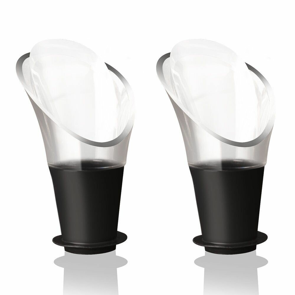 Уловитель имеет раздвоенный носик, позволяющий возвращать оставшиеся на уловителе капли в бутылку, он прекрасно подходит для большинства винных бутылок! В набор входят 2 каплеуловителя.