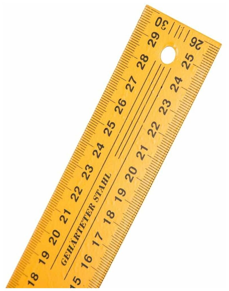 Предназначен для нанесения разметки при выполнении строительных работ. Линейка изготовлена из инструментальной стали, основание - из алюминиевого сплава. Двухсторонняя шкала.