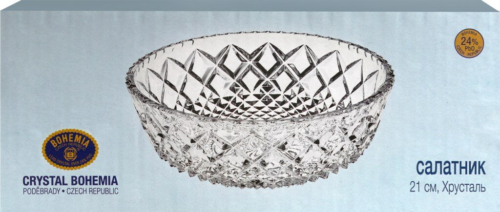 Салатник Diamond 21 см 990/61900/0/06600/210-109 от Чешского предприятия Crystal BOHEMIA символизирует непревзойденное качество вековой истории производства традиционного Чешского хрусталя. Компания входит в число ведущих мировых производителей изделий из свинцового хрусталя, и является основным поставщиком этих изделий в Чешской Республике. Компания продолжает богатую историю и традиции, воплощенные в TM Crystal BOHEMIA. Продукцию, гармонично сочетающую высокий уровень мастерства и новейшие технологии, отличает высочайшее европейское качество, которое по достоинству оценили во всем мире. В настоящее время продукция предприятия Crystal BOHEMIA считается эталоном производства традиционного Чешского хрусталя с содержанием оксида свинца не менее 24 %.