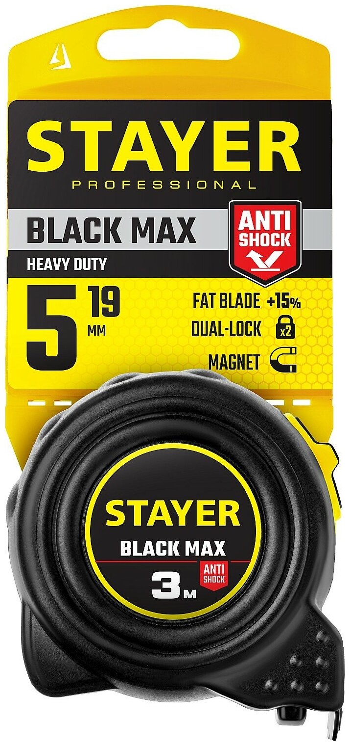 STAYER BlackMax, 5 м х 19 мм, рулетка с двумя фиксаторами, Professional (3410-05)