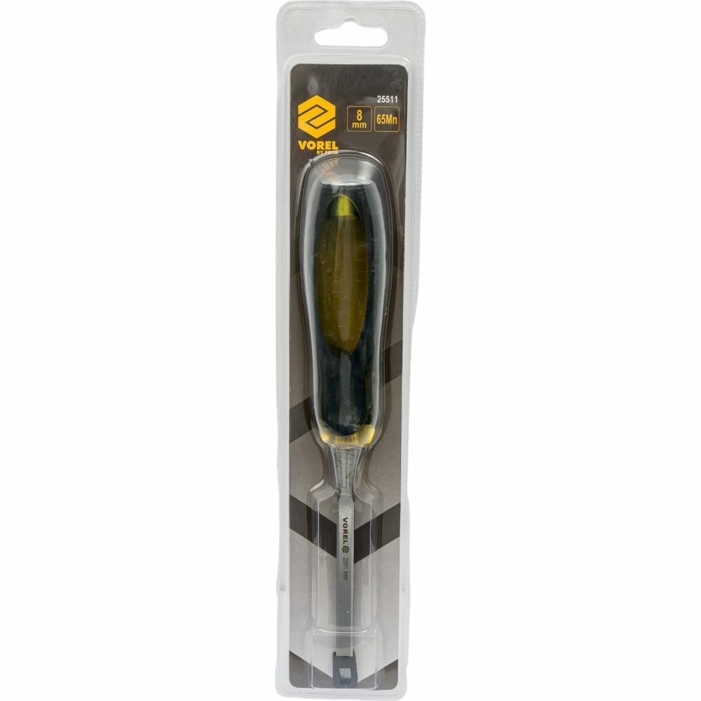 Стамеска VOREL ударная, 8 мм арт.Высококачественное деревянное долото из марганцевой стали с символом 65mn. Края клиньев фрезерованы полностью полированными. Вал изготовлен из высококачественного пластика, устойчив к механическому износу, усилен металлической вставкой для перфорации. Для основных работ, связанных с деревообработкой, например, встраивания дверных замков.